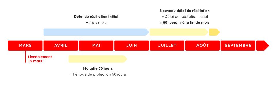 À noter: si la période maximale de protection expire et que le fait générateur de la protection (par exemple, une maladie) s’étend au-delà des 30, 90 ou 180 jours selon les cas, un licenciement peut être prononcé même en cas de maladie si celle-ci se poursuit au-delà de la période de protection.