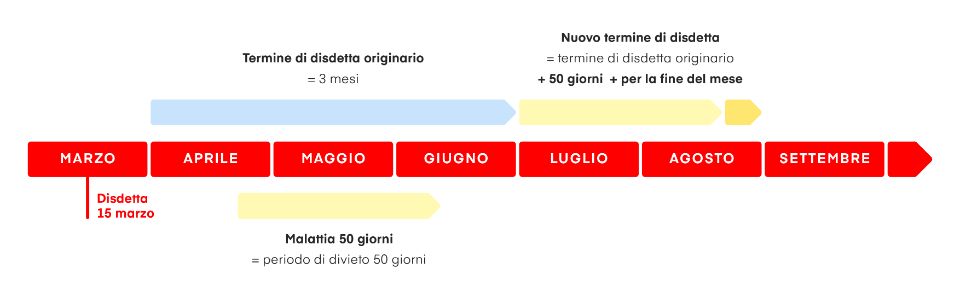 Ciò significa anche che, se il 16 marzo le collaboratrici e i collaboratori si ammalano per dieci giorni e poi tornano al lavoro, questa assenza dal lavoro non comporta una proroga del termine di disdetta, che inizia quindi il 1° aprile e termina tre mesi dopo con la risoluzione del rapporto di lavoro.